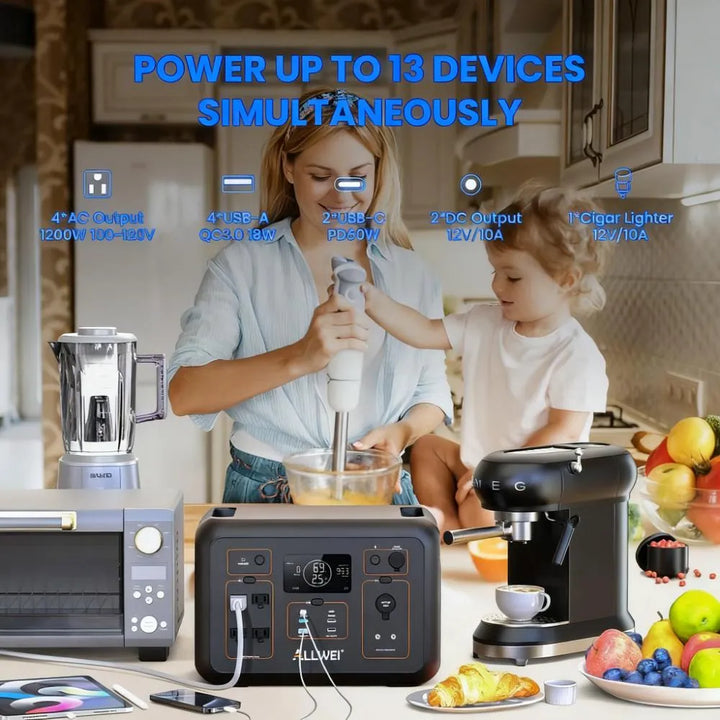 1008Wh Power Station: 13 Outlets, 1200W Output