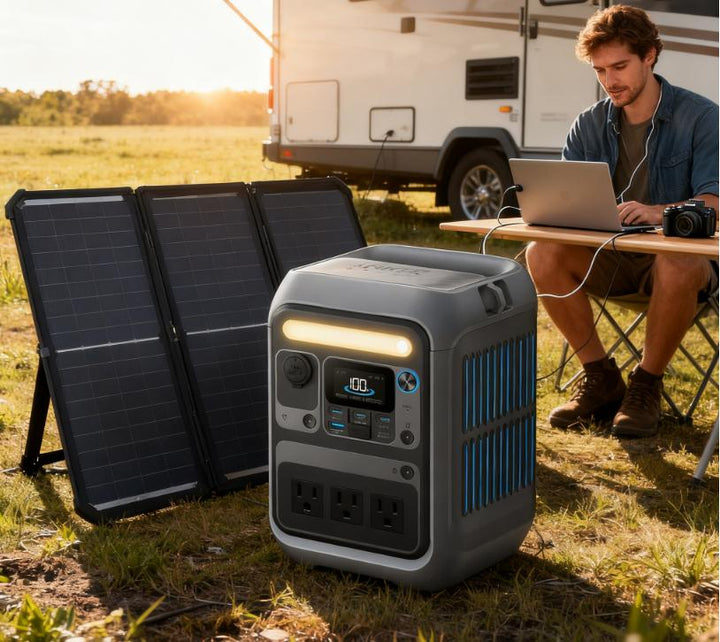 Solar Compatible: Recharge sustainably using 60W or 100W solar panels for unlimited off-grid power.